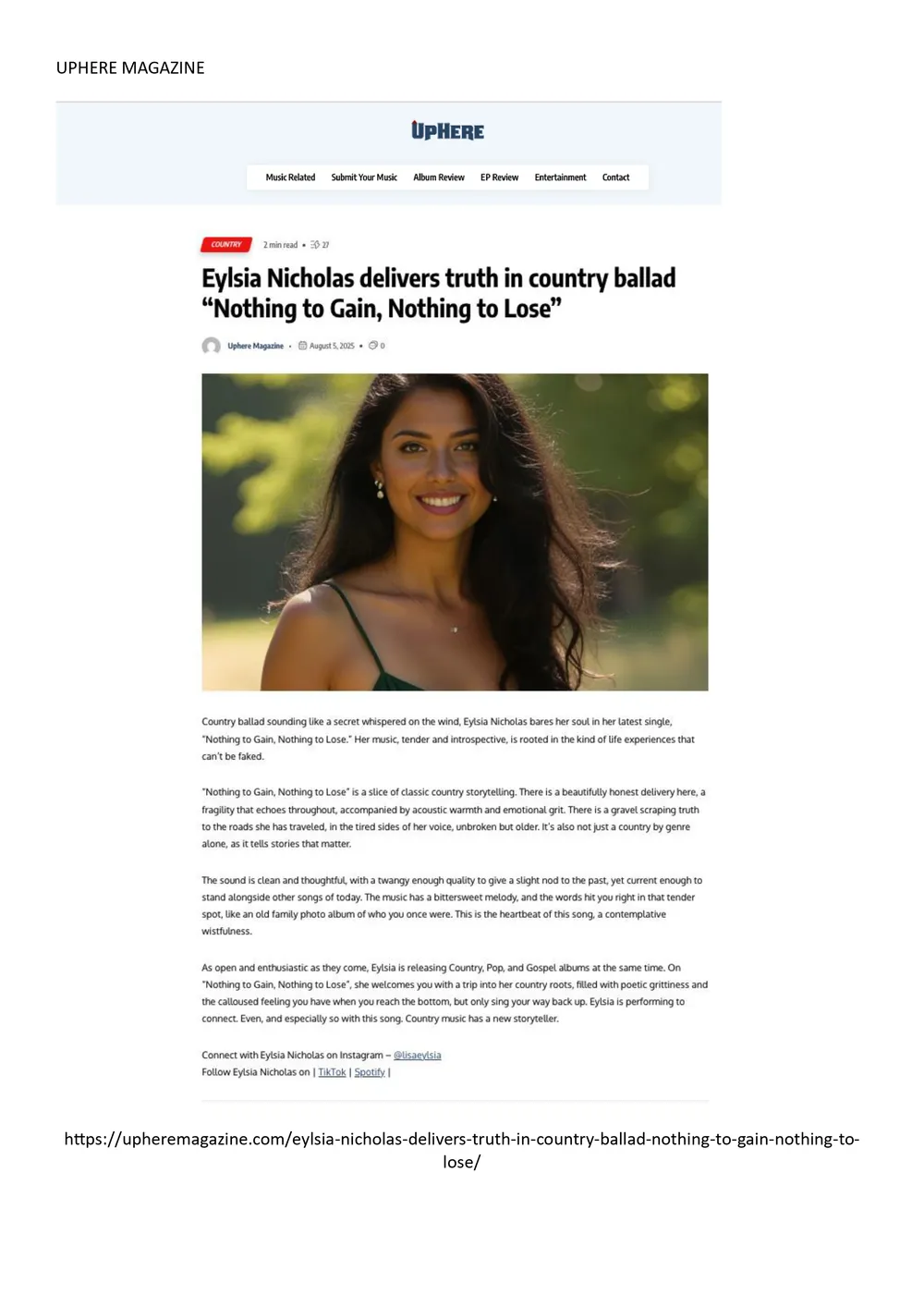 "For those looking for a fresh, courageous voice in music, “Queen of the Game 2” is the track you didn’t realize you needed but will definitely remember. Eylsia Nicolas has arrived, and she’s ready to take on the world."